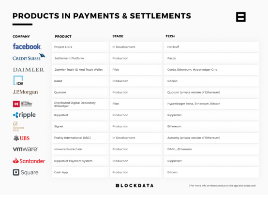 排名第二的是支付与结算领域的发展。当然,这个榜单中的公司主要是在金融服务领域。银行业巨头摩根大通的Quorum区块链最初是建立在以太坊平台之上的,但增加了权限访问等功能使其对企业用户同行更具吸引力。Ripple是一个较新进入金融服务领域的公司,以其XRP Ledger和附带的XRP数字货币而闻名。RippleNet宣称自己是 "全球最便捷的全球支付网络",它与多家大牌金融机构合作,包括Santander、汇款网络MoneyGram(Ripple是该公司股东之一)和日本银行MUFG。目前由Twitter首席执行官、比特币支持者杰克-多西(Jack Dorsey)运营的Square目前将其受欢迎的Cash App的一半收入归功于BTC上,2019年期间其通过BTC带来的收入共计5.16亿美元。